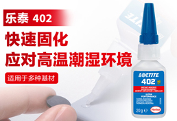 查看详情 +乐泰402瞬干胶是一款无色透明至稻草色胶粘剂,耐高温至135°C下仍提供稳固粘接,粘接应用广泛,适用于多孔材料(多孔材料,通常包含木材、纸张、皮革和织物等基材)、塑料盒金属材料。