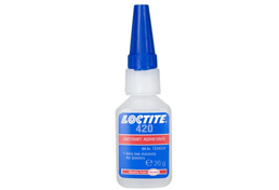 查看详情 +乐泰420瞬干胶是一种单组分、高强度、低粘度、表面不敏感型、可以在室温下快速固化的通用工业级氰基丙烯酸酯瞬间胶粘剂,适合用在金属,橡胶和塑料的粘接,初步固化时间5~20秒,在24小时之后可以达到最高的固化强度,通过乐泰420瞬干胶的低粘度特性使它非常容易透过预组装的部件。