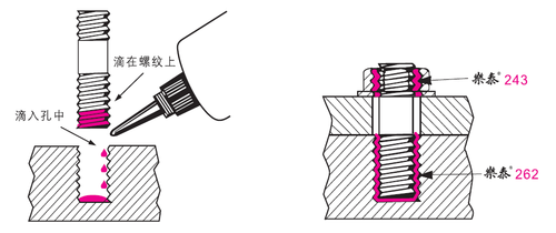 一、在通孔(螺栓、螺母)螺丝下如何使用乐泰螺纹锁固剂?