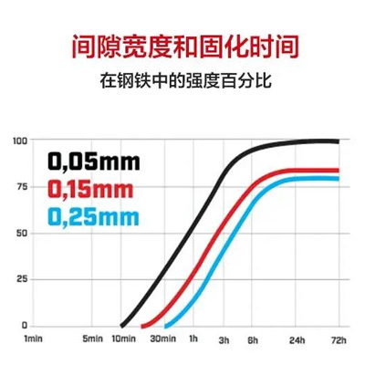 螺纹锁固胶需要基质表面的金属离子才能有效固化。较大的粘合间隙导致金属离子通过粘合剂扩散较慢。对于间隙大的组件,可以通过促进剂来减少固化时间。