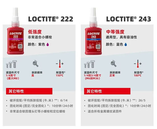 作为乐泰螺纹锁固系列的佼佼者,目前在产的乐泰243和乐泰222有哪些区别呢?