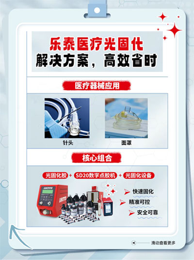汉高乐泰提供的一站式医疗器械解决方案:医疗粘合剂 + 专业配套设备,为医疗器械制造领域提供完整的技术支持。