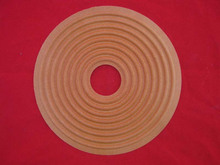 中心定位片是喇叭中最重要部件之一,现在的扬声器多是化学高分子织物做的这个支片,特性上已经很接近葛麻但是高档的HFi扬声器依旧采用葛麻制作定位片除了材料要求高,波纹的高低,形状密度曲线各项物理值皆影响音质,并不是随随便便制作的就可以的,粘接中心定位片的胶也很讲究,是织物和金属之间的粘接。