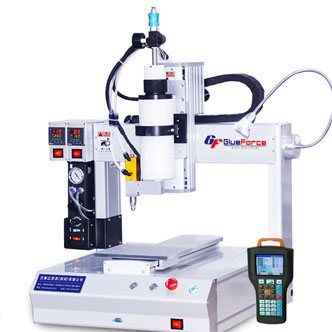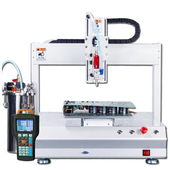 双组分点胶设备又叫双液点胶机、AB点胶机等,双液型点胶系统(灌胶机),由三部分组成:两个压力桶(主要作用是向点胶阀提供并储存两种不同的胶水),AB胶点胶阀(主要作用是将两种胶按不同的比例混合在一起,在一定的时间内发生发应后凝固),还有一个是控制器又称点胶机(主要作用是控制点胶量和点胶的频率和精度)