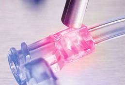 针头粘接通常粘接不锈钢针头或将套管插入玻璃或塑料注射器上。 针头高拉脱力水平通过以下方式实现:精密加工(针头位置、胶量和可靠的胶水固化)、套管的选择(材料和设计)、尤其是正确的胶水选择。通常使用