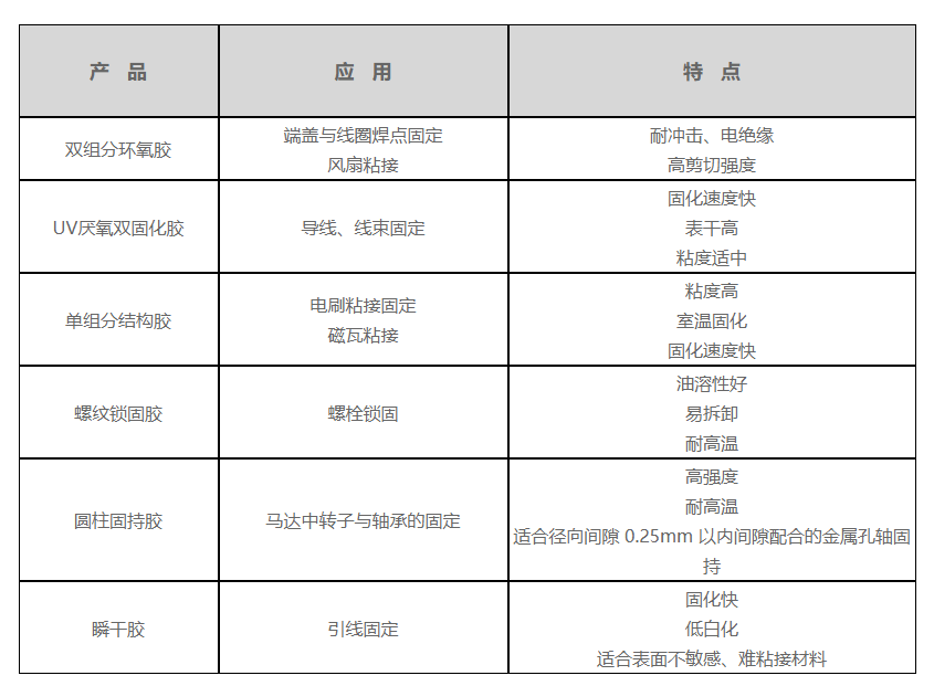 马达各部位用胶指南