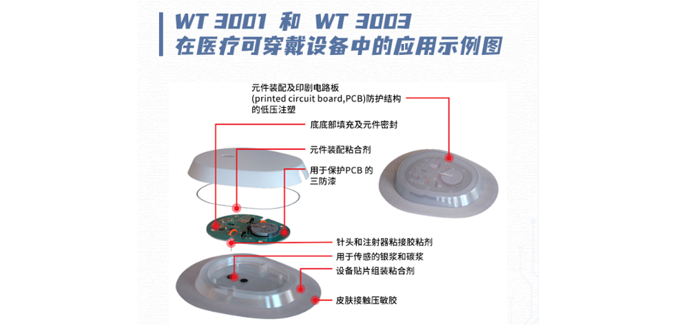 可穿戴技术的崛起,已成现代生活的一种趋势。除了智能手表,健康追踪器,也逐渐成为 可穿戴设备 的一项亮点,为人们带来诸多便利和健康监测的好处。尤其是对糖尿病患者,靠可穿戴血糖仪即可随时随地做血糖管理。汉高达乐泰胶水工程师推荐使用了Loctite WT 3001和Loctite WT 3003。两款新型医疗级粘合剂根据可穿戴设备及其潜在皮肤过敏进行研发,对皮肤安全友好。