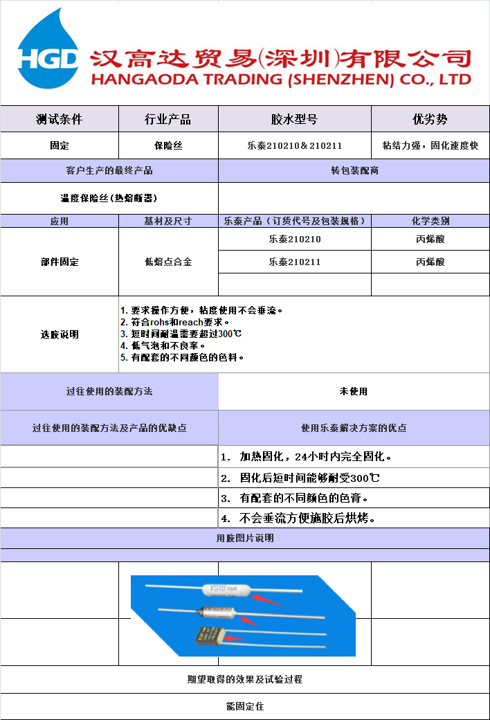 热熔断器-温度保险丝粘接用胶案例——乐泰210210&乐泰210211环氧胶