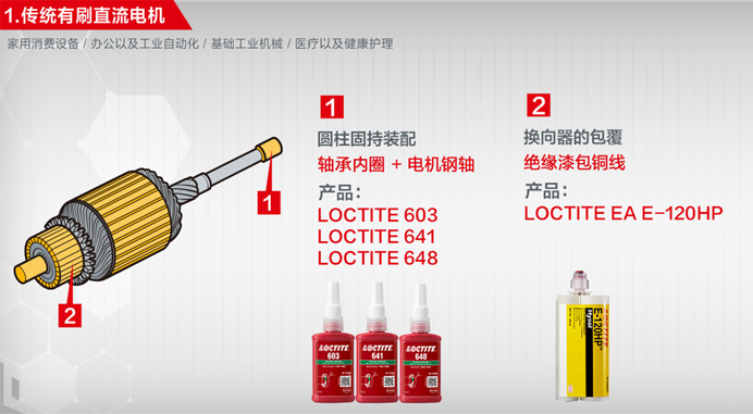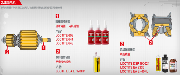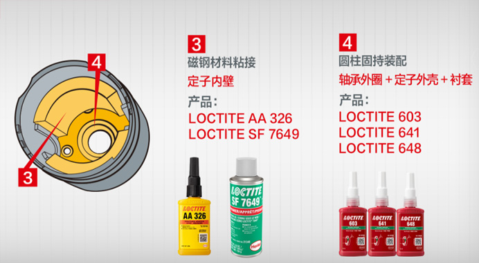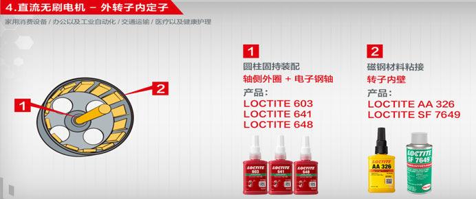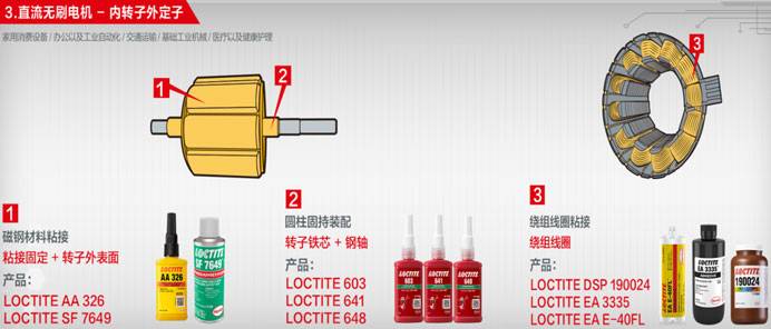 乐泰胶水电机粘接指南,针对电机日益严格能源效率的规定,对于电机的能效要求,更多的需要满足IE2,IE3,甚至IE4的标准。直流无刷,交流同步和伺服电机等需求增多。汉高达小编为您整理了电机可能会使用到的胶水。
