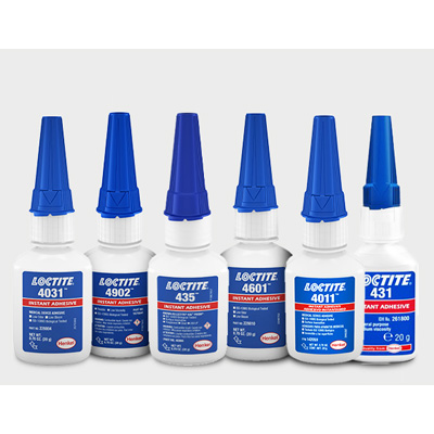 乐泰系列快干胶包括柔性、增韧、低气味/低白化、表面不敏感与耐高温等多种类型。如:乐泰4011医疗瞬干胶、乐泰4601医疗瞬干胶