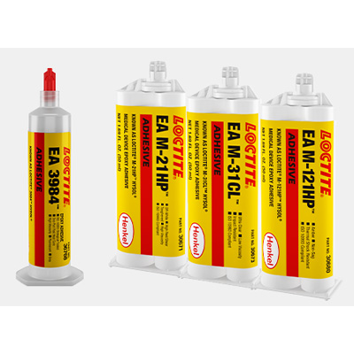 可提供优秀的耐热性与耐化学介质性能,同时也有着高内聚强度和非常小的收缩率适用于将金属粘接在多种塑料上,专为注射器和套管组装等应用提供非常优异的拉伸强度。如:乐泰M-31CL、乐泰M-21HP、乐泰M-121HP