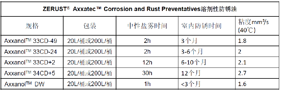 一、ZERUST® AxxanolTM 溶剂性防锈油标准说明: