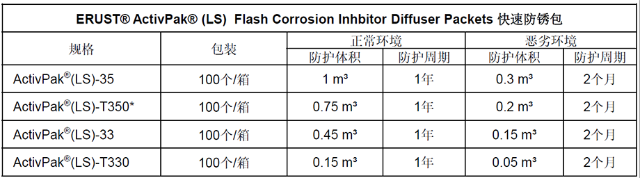 一、ERUST® ActivPak® (LS) Flash Corrosion Inhbitor Diffuser Packets 快速防锈包
