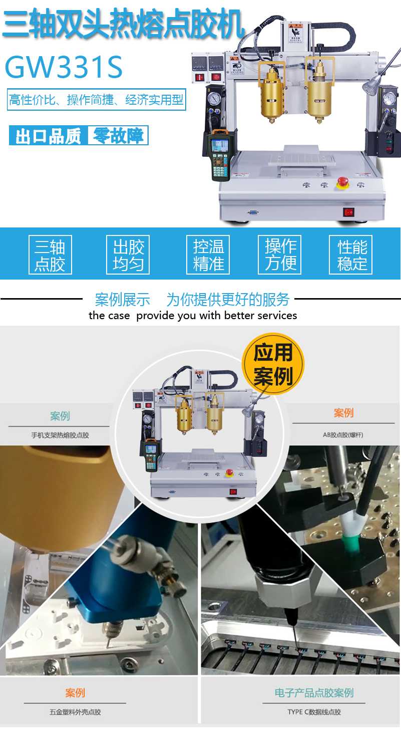点击下方立即询价→了解 固科/Glueforce三轴双头热熔自动点胶机GW331S价格需求→获得 固科/Glueforce三轴双头热熔自动点胶机GW331S资料下载 点击右边在线咨询→与客服人员建立咨询联系